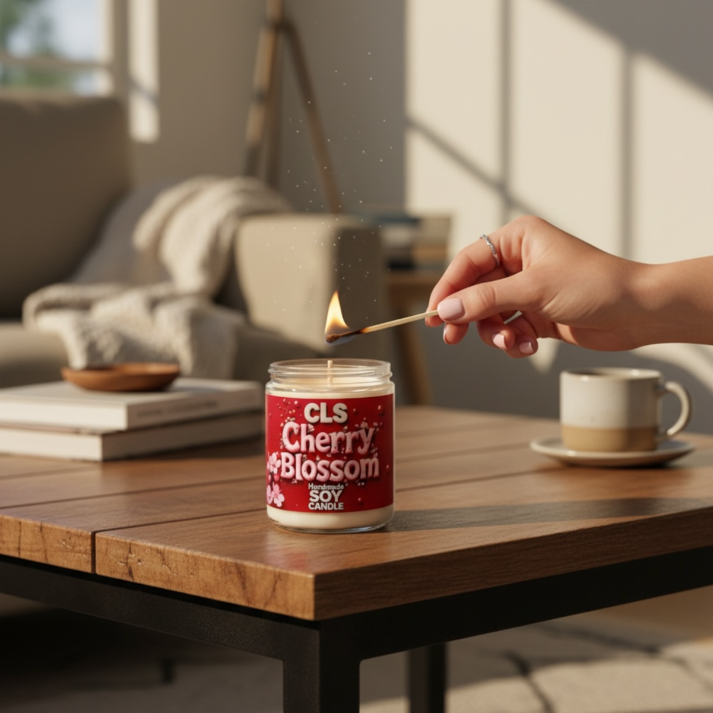 “Eternal spring at your home. Delicate notes of cherry blossoms in a handmade candle that exudes optimism. 🌸🍒“