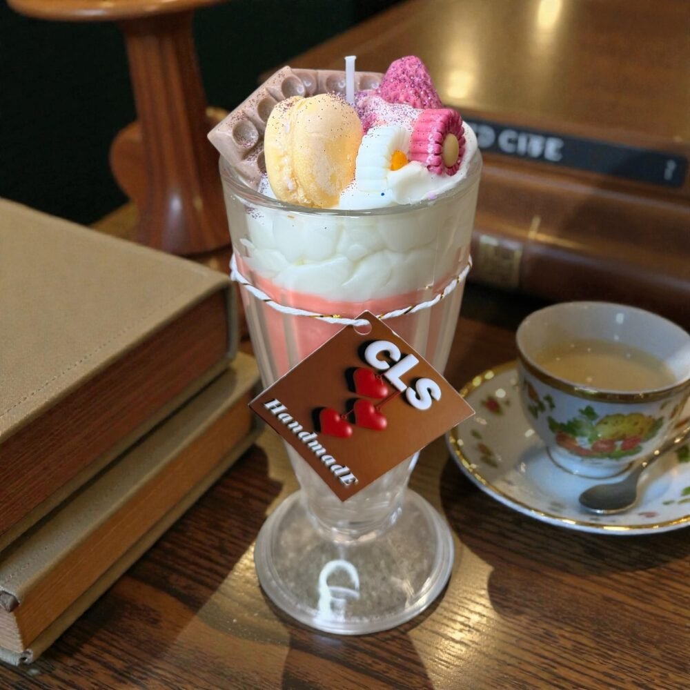 Transform any corner of your home into a Parisian confectionery! This handmade candle is not just a decorative object, but a complete sensory experience. Presented in an elegant milkshake glass, it surprises with incredible details: from the airy and fine “cream”, to the miniature macarons and the delicate floral decoration.
